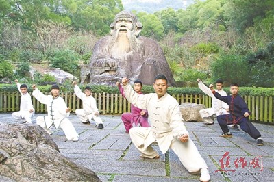 泉州市清源山,被列为全国道教文化名山。地处半山腰的老君造像,是全国现存最大、历史最久远的道家石雕。“无极生太极,太极生两仪,两仪生四相,四相生八卦……”太极拳的创生,本就源于中国古典哲学太极的理念。而今,当记者目睹老君造像前荡起阵阵太极拳风之时,一种“天人合一”的感慨油然而生。