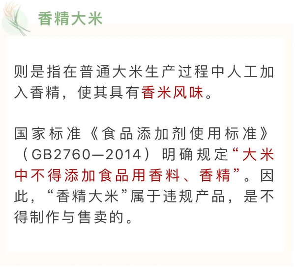 香精可能会掩盖大米本身的质量问题,导致消费者难以辨别大米是否新鲜、是否存在质量问题,而带来误食风险。