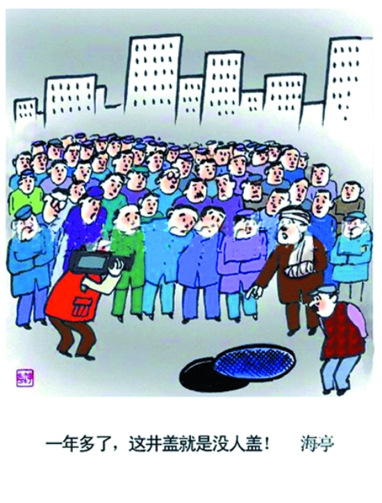 2008年8月29日,68岁的邵先生带外孙去公园玩,途经太行路与民主路十字口西南角时,被翻转的一个窨井盖拍伤左腿,住院治疗多日,相关单位却迟迟没有作出回应,本报以《老邵和老伴带着外孙去公园 没想到路边一个窨井盖 把老人送到了医院》为题报道了此事。