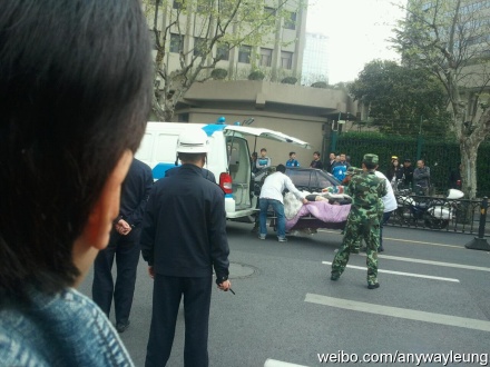有人被抬上救护车。来源:新浪微博
