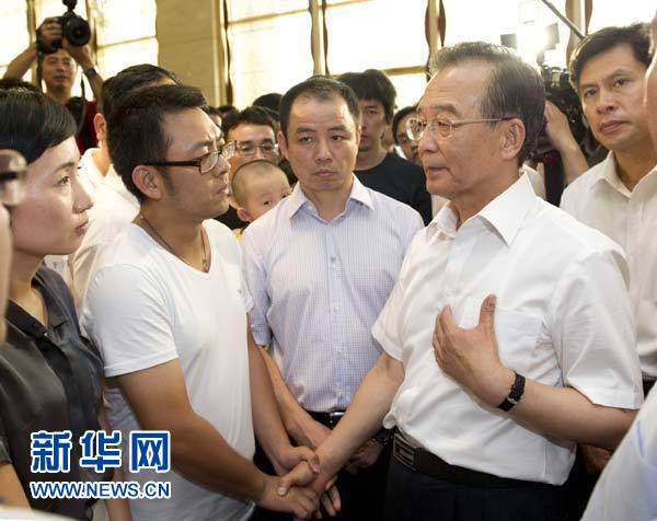 新华网温州7月28日电 中共中央政治局常委、国务院总理温家宝28日上午在温州金球国豪大酒店看望“7·23”甬温线特别重大铁路交通事故部分遇难者亲属。在认真听取了10多位遇难者亲属意见后,温家宝一一回答了他们提出的问题并讲话。