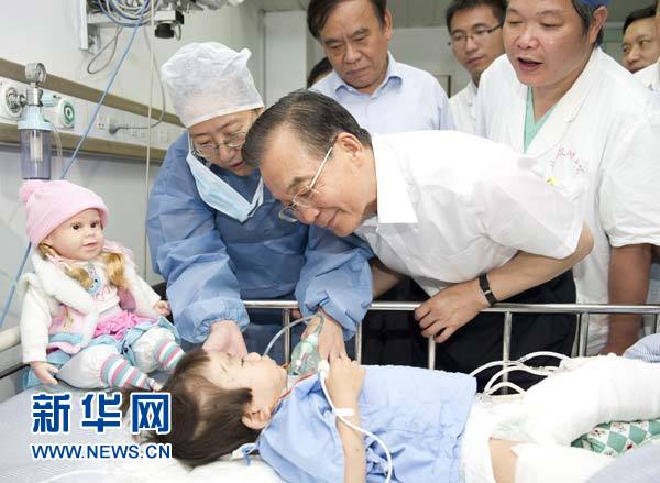温家宝特地来到温州医学院附属第二医院看望小伊伊。新华社记者 黄敬文 摄
