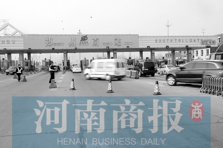 郑州南站收费站在车流量高峰时,将双向口改为出口,以提高通行能力。河南商报记者 邓万里/摄