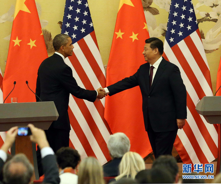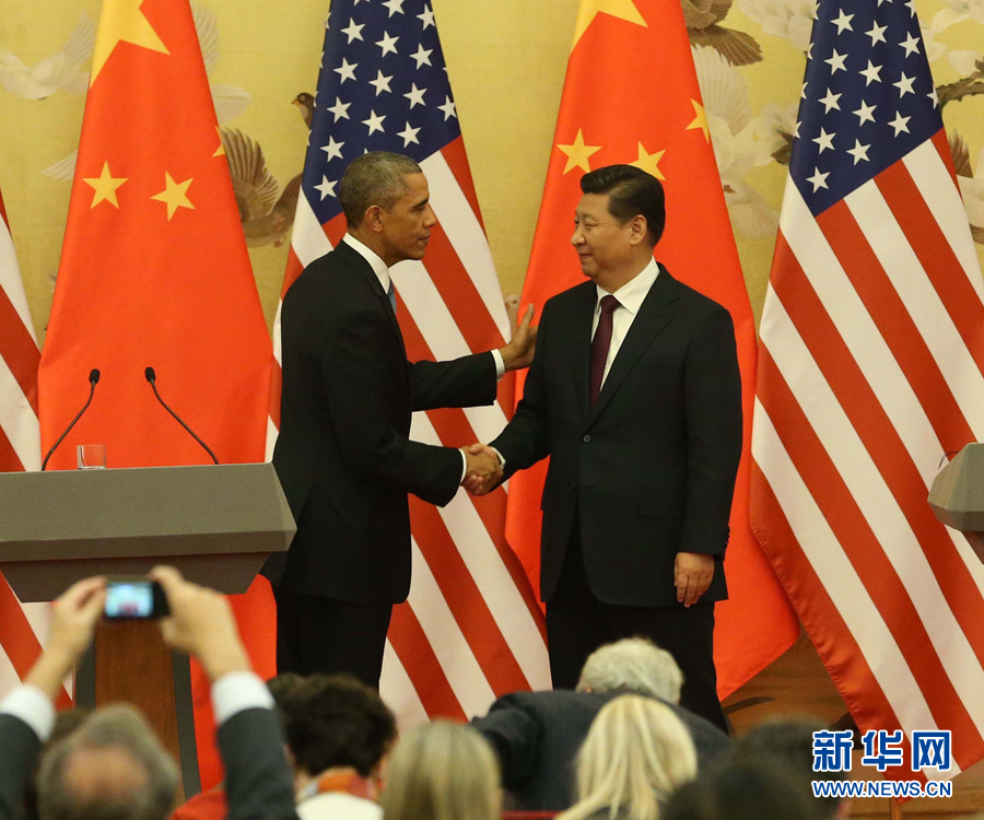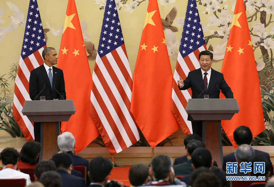 新华网北京11月12日电(记者刘华、侯丽军)国家主席习近平12日在人民大会堂同美国总统奥巴马举行会谈。会谈后,两国元首共同会见记者。