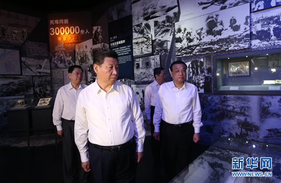 7月7日,党和国家领导人习近平、李克强、张德江、俞正声、刘云山、王岐山、张高丽等在中国人民抗日战争纪念馆,参观纪念中国人民抗日战争暨世界反法西斯战争胜利70周年主题展览《伟大胜利历史贡献》。 新华社记者 兰红光 摄