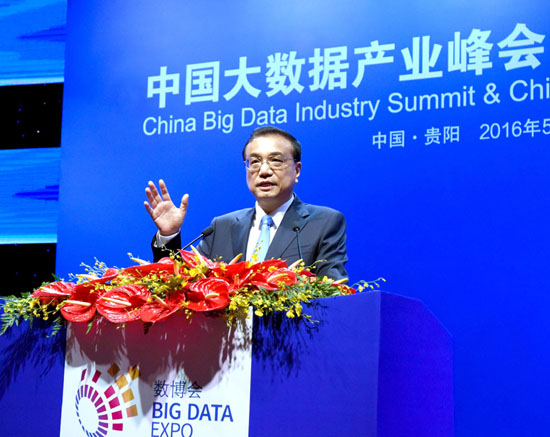 2016年5月25日,李克强总理在贵阳出席中国大数据产业峰会暨中国电子商务创新发展峰会开幕式并致辞。总理说,要打破“信息孤岛”和“数据烟囱”,推动政府信息共享,提升政府效能,让企业和群众办事创业更方便。(资料图)