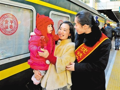 大连火车站工作人员热情询问重点旅客的乘车需求。 |