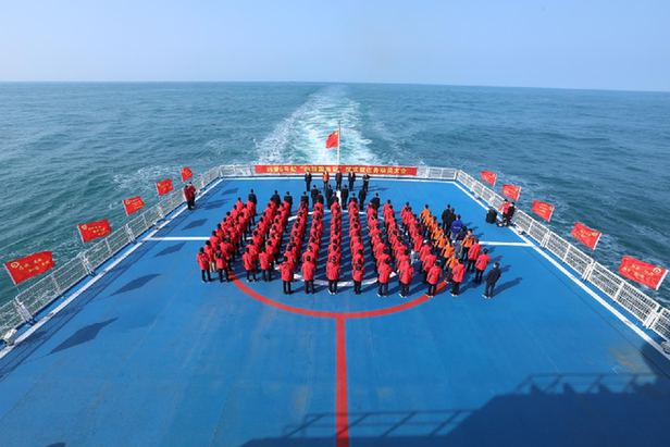 远望6号船组织向祖国再见仪式