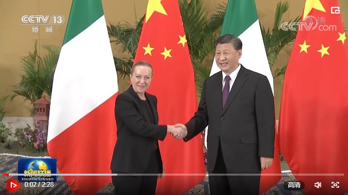 梅洛尼表示,我非常高兴有机会同习近平主席会面。意中都是文明古国,友好交往历史悠久。意方对两国文化和旅游年活动感到满意,愿继续推进两国贸易、文化等领域交流合作。意方不赞同阵营对抗,认为各国应该尊重彼此差异和分歧,加强团结,致力于对话交流,增进相互了解。中国是世界大国,亚洲在全球分量中越来越重,意方希望同中国在联合国、二十国集团等框架下密切协作,更加有效应对当今世界面临的各种紧迫挑战。