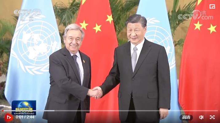 习近平强调,中国是以联合国为核心的国际体系的坚定支持者。要实现世界和平,《联合国宪章》宗旨和原则必须遵守,各国合理安全关切必须重视。当前全球发展进程面临前所未有的挑战,发展中国家特别是脆弱国家受到严重冲击。我们要将发展置于国际议程中心位置,培育全球发展新动能,构建全球发展伙伴关系,推动实现更加强劲、绿色、健康的全球发展,让发展成果更多更公平惠及每一个国家、每一个人。在这方面,各国应该说到做到,多晒成绩单,而不是喊口号。中方愿同联合国加强合作,共同推进全球发展倡议、全球安全倡议取得实实在在的成果。我们将以中国式现代化推动人类整体进步,以中国新发展为世界带来新机遇,为动荡的世界提供更多稳定性和确定性。中方将继续坚持真正的多边主义,坚定支持联合国的工作。