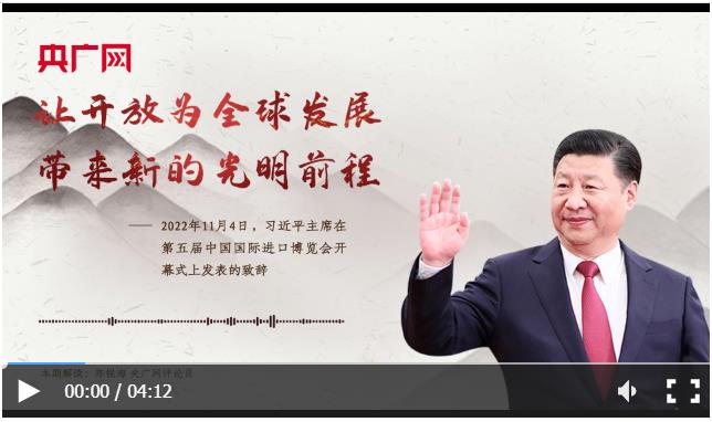 这段话出自2022年11月4日习近平主席在第五届中国国际进口博览会开幕式上发表的致辞。