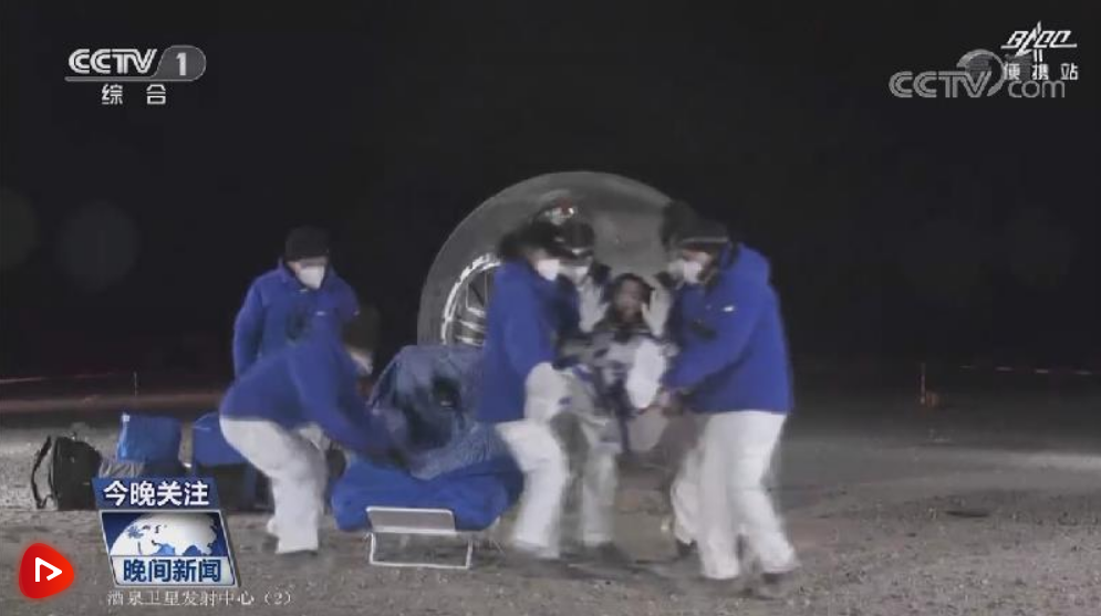 返回舱成功着陆后,担负搜救回收任务的搜救分队及时发现目标并抵达着陆现场。返回舱舱门打开后,医监医保人员确认航天员身体健康。