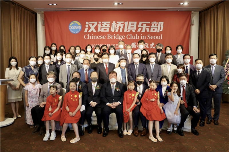 图为2022年8月,“汉语桥”俱乐部首尔站揭牌仪式现场。(图源:中国驻韩国大使馆)