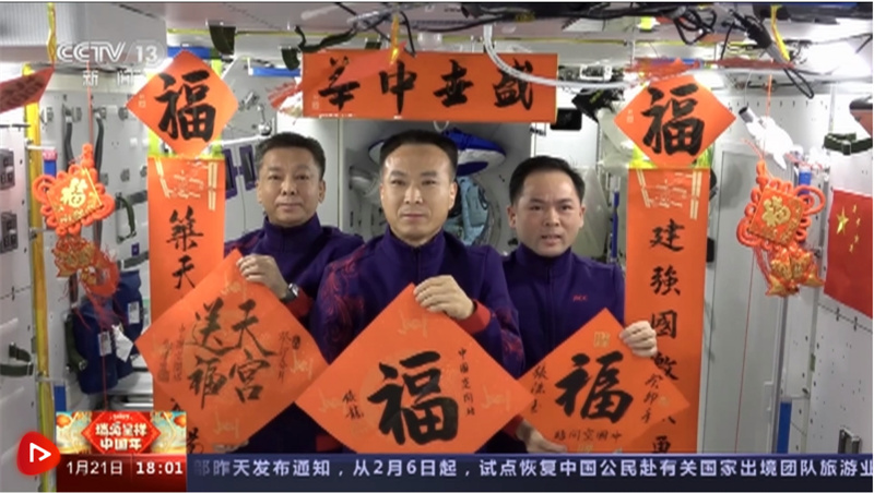 不知天上宫阙,今夕是何年,看来,他们也在过年。现在,来看一下航天员们送给全国人民最新的新春祝福。