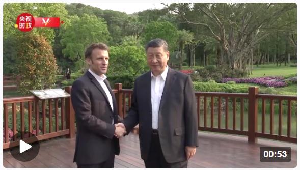 4月7日下午,国家主席习近平在广州松园同法国总统马克龙举行非正式会晤。