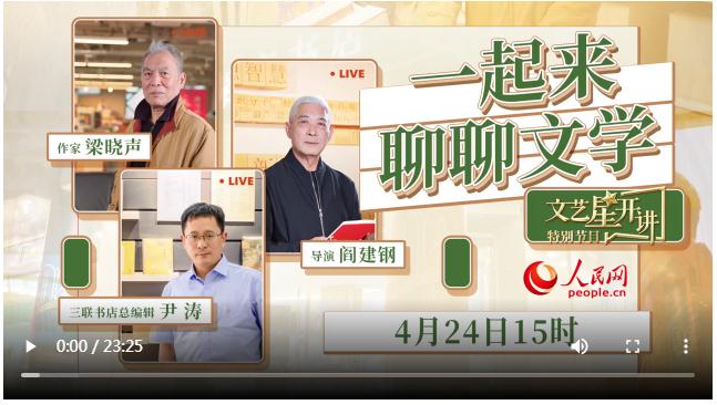 “与书为伴,不亦乐乎,人世间值得。”4月24日,作家梁晓声、导演阎建钢、三联书店总编辑尹涛做客人民网“文艺星开讲”,从各自的经历出发分享读书感悟,畅聊阅读在当下的价值和意义、影视与文学如何携手“破圈”。