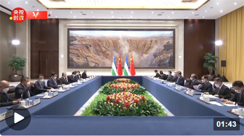 5月18日下午,国家主席习近平在西安同来华出席中国-中亚峰会并进行国事访问的乌兹别克斯坦总统米尔济约耶夫会谈。