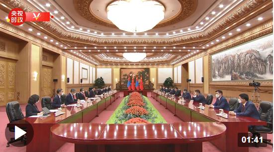 习近平指出,中蒙山水相连、毗邻而居,发展长期睦邻友好关系是双方一道作出的战略选择,完全符合两国人民根本利益。中方高度重视发展中蒙关系,是蒙古国可以信赖和倚重的伙伴。中方愿同蒙方一道,以构建中蒙命运共同体为引领,不断深化两国友好、互信、合作,推动中蒙全面战略伙伴关系向更高水平迈进,为本地区注入更多稳定性和确定性。