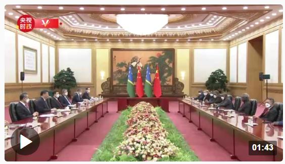 索加瓦雷说:“主席先生,我们亲眼看见当今世界上的种种霸凌行径,我钦佩您在此艰难时刻所表现出的坚定立场。您正在引领(世界发展)。所罗门群岛和其他太平洋岛屿国家钦佩您的立场,这表明您将继续在当今世界发生的种种变化中,起到极具远见卓识的领导作用。”