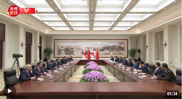 加里巴什维利说:“主席先生,我非常高兴也非常荣幸能同您会面。这对我来说是一次历史性的访问。格鲁吉亚坚定奉行一个中国原则,高度珍视同中国的友谊与合作。我也非常感谢中方同意将同格鲁吉亚的关系提升为战略伙伴关系。我认为这一决定将会给我们两国带来实实在在的利益。”