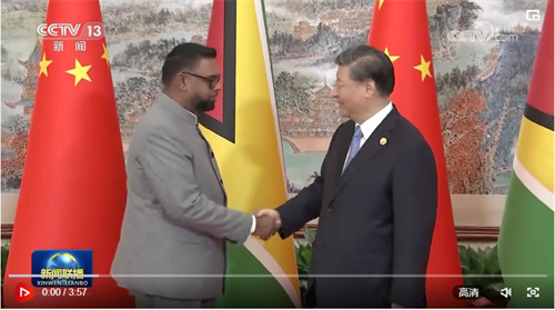 习近平指出,中国和圭亚那虽然相距遥远,但友谊源远流长。圭亚那是加勒比地区最早承认一个中国原则并同新中国建交的国家。去年,中圭隆重庆祝了建交50周年。近年来,圭亚那经济快速发展,国家建设日新月异,中国正在以高质量发展全面推进中国式现代化。中圭两国要做彼此信赖、相互倚重的好朋友,共享机遇、共迎挑战、共谋合作、共促发展,推动构建更加紧密的中圭命运共同体。