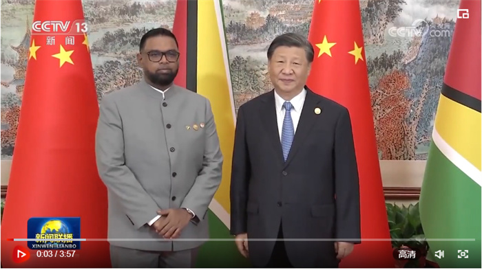 习近平指出,中国和圭亚那虽然相距遥远,但友谊源远流长。圭亚那是加勒比地区最早承认一个中国原则并同新中国建交的国家。去年,中圭隆重庆祝了建交50周年。近年来,圭亚那经济快速发展,国家建设日新月异,中国正在以高质量发展全面推进中国式现代化。中圭两国要做彼此信赖、相互倚重的好朋友,共享机遇、共迎挑战、共谋合作、共促发展,推动构建更加紧密的中圭命运共同体。