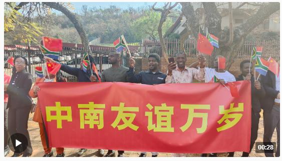 当地时间8月22日上午,习近平主席将在南非总统府出席拉马福萨总统举行的欢迎仪式。当地民众和华人华侨在沿途挥舞中南两国国旗,高举“热烈欢迎习近平主席”、“中南友谊万岁”等横幅,热烈欢迎习近平主席到访。