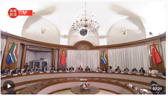当地时间8月22日上午,正在南非进行国事访问的国家主席习近平在比勒陀利亚总统府同南非总统拉马福萨会谈。