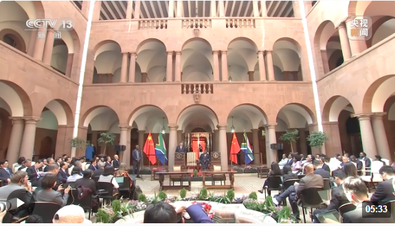 当天,在比勒陀利亚总统府,习近平主席同拉马福萨总统举行会谈。这是此次国事访问最重要的一场活动。