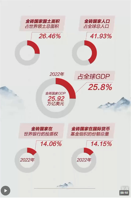 当今时代,以金砖国家为代表的新兴市场国家和发展中国家群体性崛起,正在从根本上改变世界版图。新兴市场国家和发展中国家过去20年对世界经济增长的贡献率高达80%,过去40年国内生产总值的全球占比从24%增至40%以上。