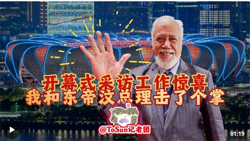 开幕式开始前,国际贵宾陆续抵达杭州奥体中心体育场。ToSun记者团在现场收获了开幕式采访工作的意外之喜——和东帝汶总理夏纳纳击了个掌。