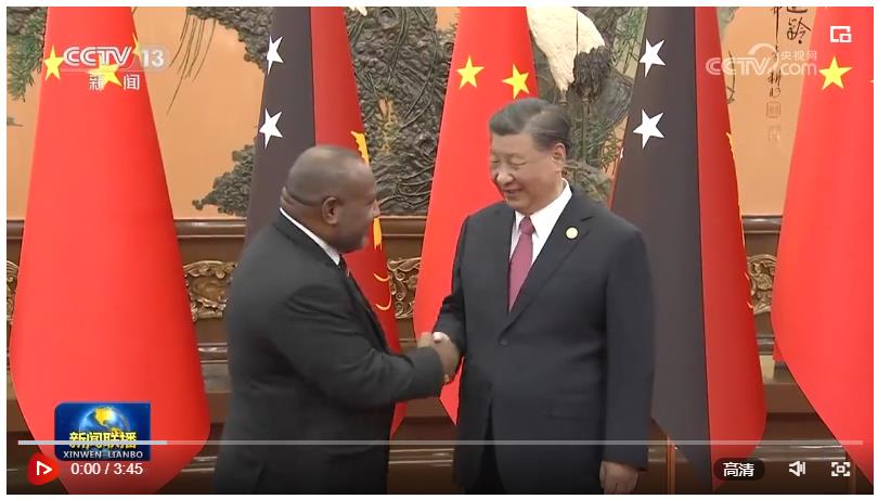 习近平强调,中国始终坚持大小国家一律平等,主张和睦邻邦。中国对太平洋岛国的帮助是南南合作,坦坦荡荡、真诚无私。中方对太平洋岛国的帮助不附加政治条件,不谋求排他性权利,不强加于人,不开“空头支票”,充分尊重太平洋岛国意愿和实际需要。中方将继续深化同太平洋岛国合作,助力当地经济社会长远发展。中方支持巴新在国际和地区事务中发挥更大作用,愿同巴新就重大国际和地区问题加强沟通和协调,维护发展中国家共同利益。
