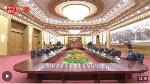 10月18日晚,国家主席习近平在人民大会堂会见来华出席第三届“一带一路”国际合作高峰论坛的肯尼亚总统鲁托。