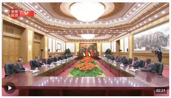10月19日晚,国家主席习近平在人民大会堂会见来华出席第三届“一带一路”国际合作高峰论坛的莫桑比克总理马莱阿内。