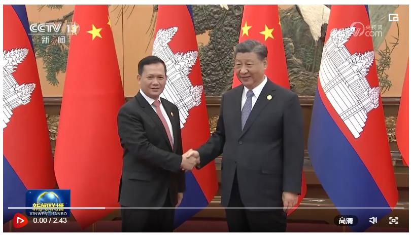 10月19日上午,国家主席习近平在人民大会堂会见来华出席第三届“一带一路”国际合作高峰论坛的柬埔寨首相洪玛奈。