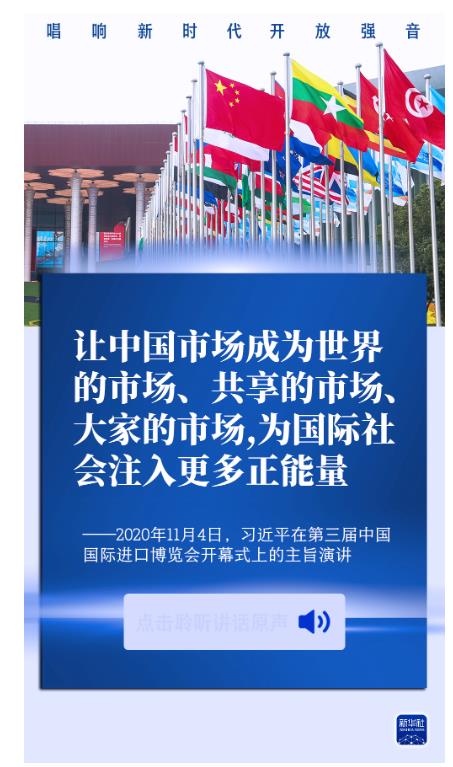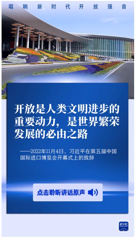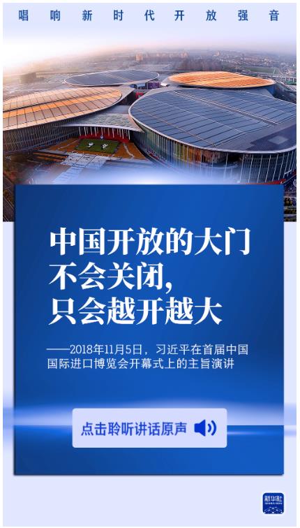 开放是当代中国的鲜明标识。习近平主席说,举办中国国际进口博览会,是中国着眼于推动新一轮高水平对外开放作出的重大决策,是中国主动向世界开放市场的重大举措。习主席在历届进博会上的重要讲话,发出开放合作的时代强音,为建设开放型世界经济注入正能量。