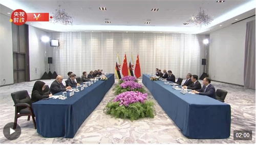 习近平指出,中国和文莱是隔海相望的友好邻邦,也是相互信任、相互支持的好伙伴。建交30多年来,两国不断深化政治互信,积极对接发展战略,各领域务实合作取得丰硕成果,在国际和地区事务中保持良好配合,树立了大小国家平等相待、互利共赢的典范,为地区和平稳定和发展繁荣作出了积极贡献。今年是中文建立战略合作伙伴关系5周年。中方愿同文莱一道,高质量共建“一带一路”,推动双边关系不断得到新发展,为两国人民带来更多福祉。
