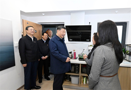 11月29日,习近平总书记在上海市考察闵行区新时代城市建设者管理者之家,了解保障性租赁住房建设情况。