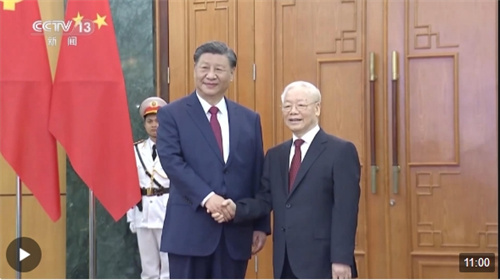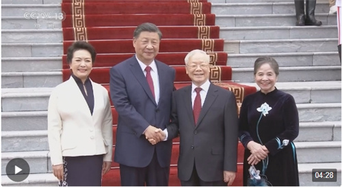 当地时间12月12日下午,刚刚抵达河内的中共中央总书记、国家主席习近平在越共中央驻地同越共中央总书记阮富仲举行会谈。双方宣布中越两党两国关系新定位,在深化中越全面战略合作伙伴关系基础上,携手构建具有战略意义的中越命运共同体。
