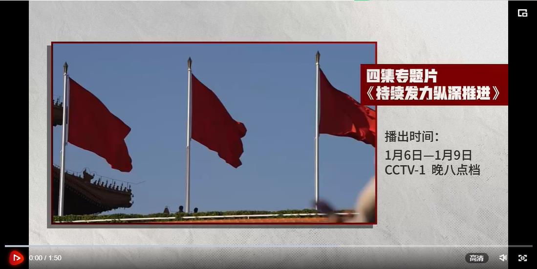 为学习贯彻党的二十大精神,落实二十届中央纪委二次全会部署,由中央纪委国家监委宣传部与中央广播电视总台联合摄制的四集电视专题片《持续发力 纵深推进》,将于1月6日至9日在央视综合频道晚8点档播出。