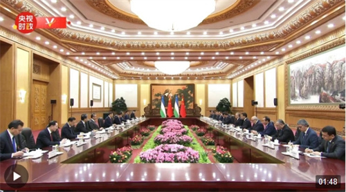 1月24日下午,国家主席习近平在人民大会堂同来华进行国事访问的乌兹别克斯坦总统米尔济约耶夫举行会谈。