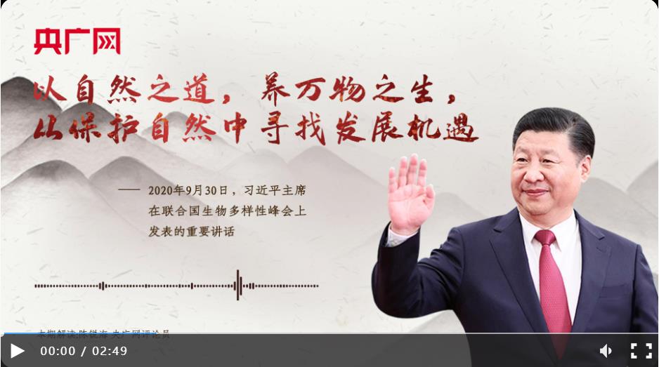 这段话出自2020年9月30日习近平主席在联合国生物多样性峰会上发表的重要讲话。
