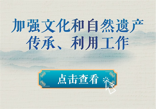 文化遗产体现了中华民族旺盛的生命力和创造力,自然遗产昭示了神奇的自然造化同中华民族的和谐依存关系。习近平总书记一直以来高度重视文化和自然遗产保护传承利用工作,近日专门就此作出重要指示强调,守护好中华民族的文化瑰宝和自然珍宝,让文化和自然遗产在新时代焕发新活力绽放新光彩。让我们一同学习。