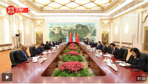 8月20日下午,国家主席习近平在北京人民大会堂会见来华正式访问的斐济总理兰布卡。