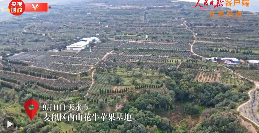 南山花牛苹果基地位于麦积区南部山区,涉及花牛、马跑泉、甘泉3镇25村,总面积140平方公里。截至目前,已建成花牛苹果种植基地15万亩,绿化造林2300亩,配套建设产业路360公里、提灌工程6处,培育发展果品经营主体120家,基地苹果总产量达22万吨,总产值6亿元,带动4万多人受益。