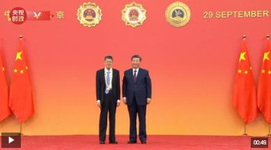 中华人民共和国国家勋章和国家荣誉称号颁授仪式9月29日上午10时在人民大会堂隆重举行。中共中央总书记、国家主席、中央军委主席习近平向“经济研究杰出贡献者”国家荣誉称号获得者张卓元颁授奖章。