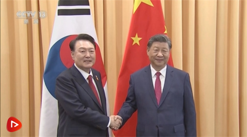 当地时间11月15日上午,国家主席习近平在利马出席亚太经合组织领导人非正式会议期间会见韩国总统尹锡悦。