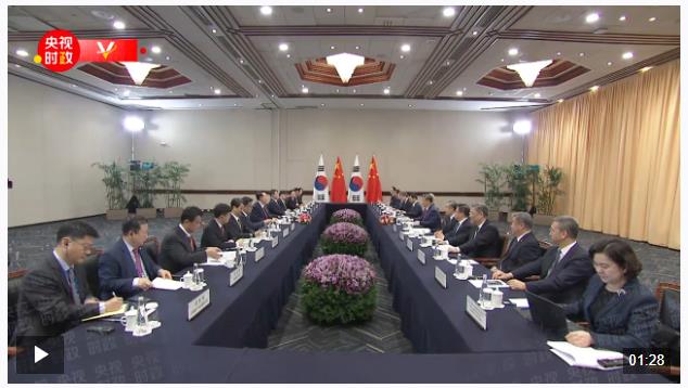 习近平指出,这是2022年巴厘岛之后我们时隔两年再次会晤。过去两年,国际和地区形势发生不少变化。无论形势如何变化,中韩都应该坚守建交初心,坚定睦邻友好方向,坚持互利共赢目标,发挥地理相邻、文化相通、经济相融优势,加强交流,深化合作,推动中韩战略合作伙伴关系健康稳定发展,更好造福两国人民,为促进地区和平稳定和发展繁荣作出更大贡献。