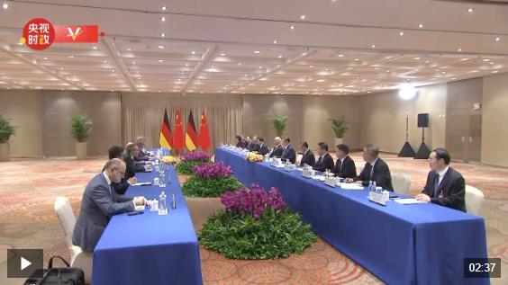 当地时间11月19日,国家主席习近平在里约热内卢出席二十国集团领导人峰会期间会见德国总理朔尔茨。