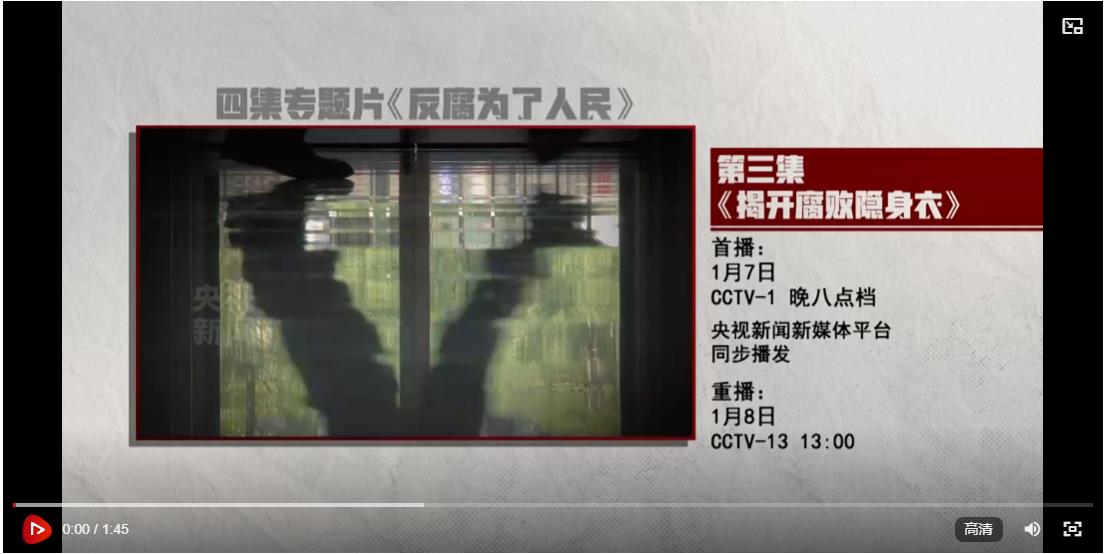 【解说词】《反腐 为了人民》第三集《揭开腐败隐身衣》,敬请关注。